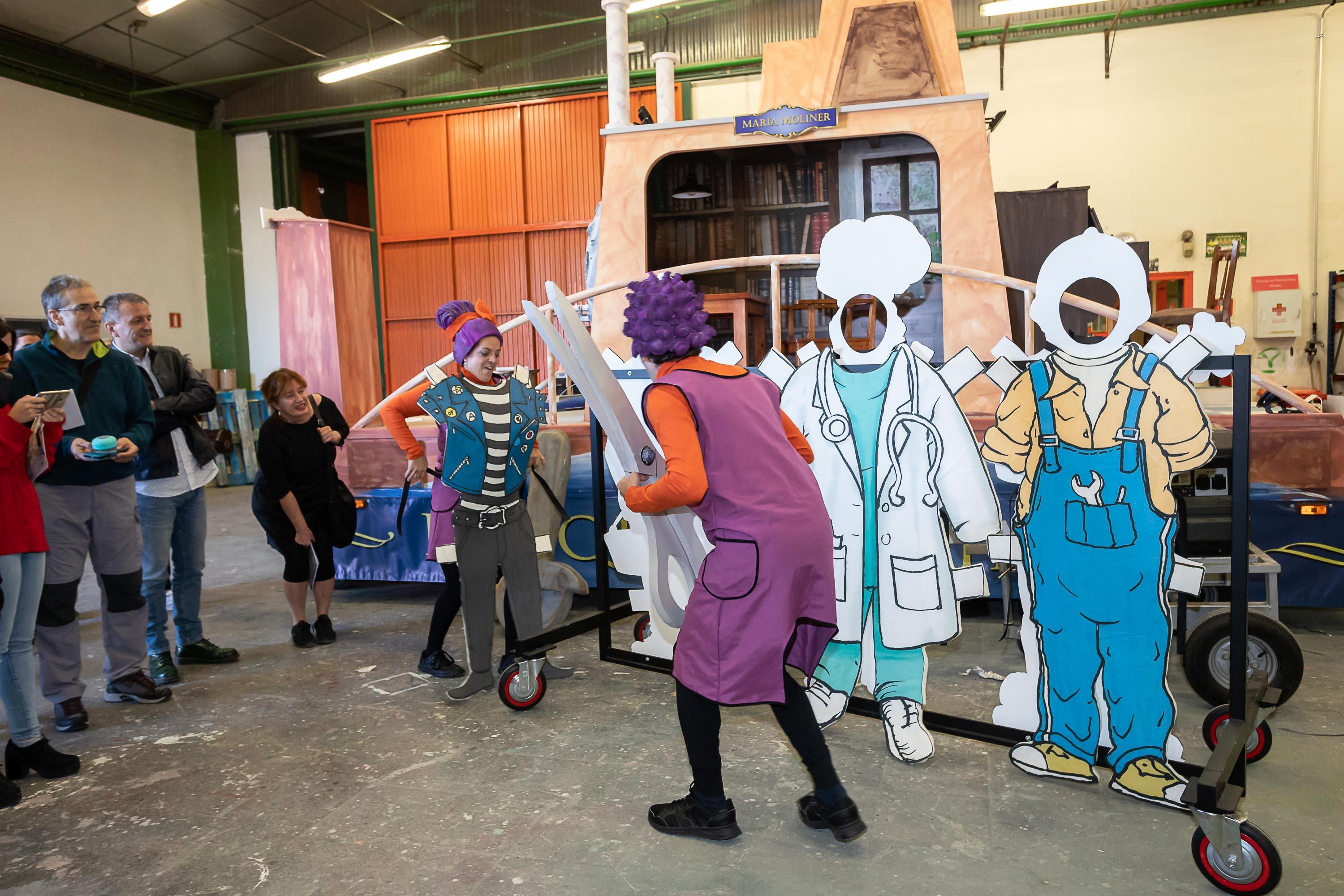 - 'La que desvela... La maja. Luz y oscuridad': la carroza representará a la maja desnuda con ocho actores con máscaras. Se trata de un trabajo corporal de gran fuerza visual con el que se pretende representar la belleza, el cuerpo femenino y las fuerzas que quieren taparlo y controlarlo.