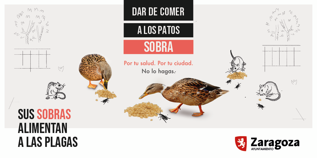 "Dar de comer a las palomas sobra". El Ayuntamiento de Zaragoza, a través del Instituto Municipal de Salud Pública (del área de Servicios Públicos y Movilidad) pone en marcha esta semana una campaña de concienciación que recuerda que no sólo no está permitido dar de comer a los animales en la vía pública sino que, además, los restos de comida favorecen la proliferación de plagas.