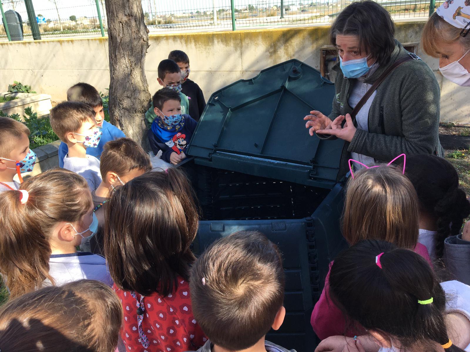 Cinco nuevos colegios se sumarán el próximo curso a este proyecto de economía circular con en que se aprende a transformar los residuos orgánicos de los almuerzos y comidas para abonar luego los huertos escolares