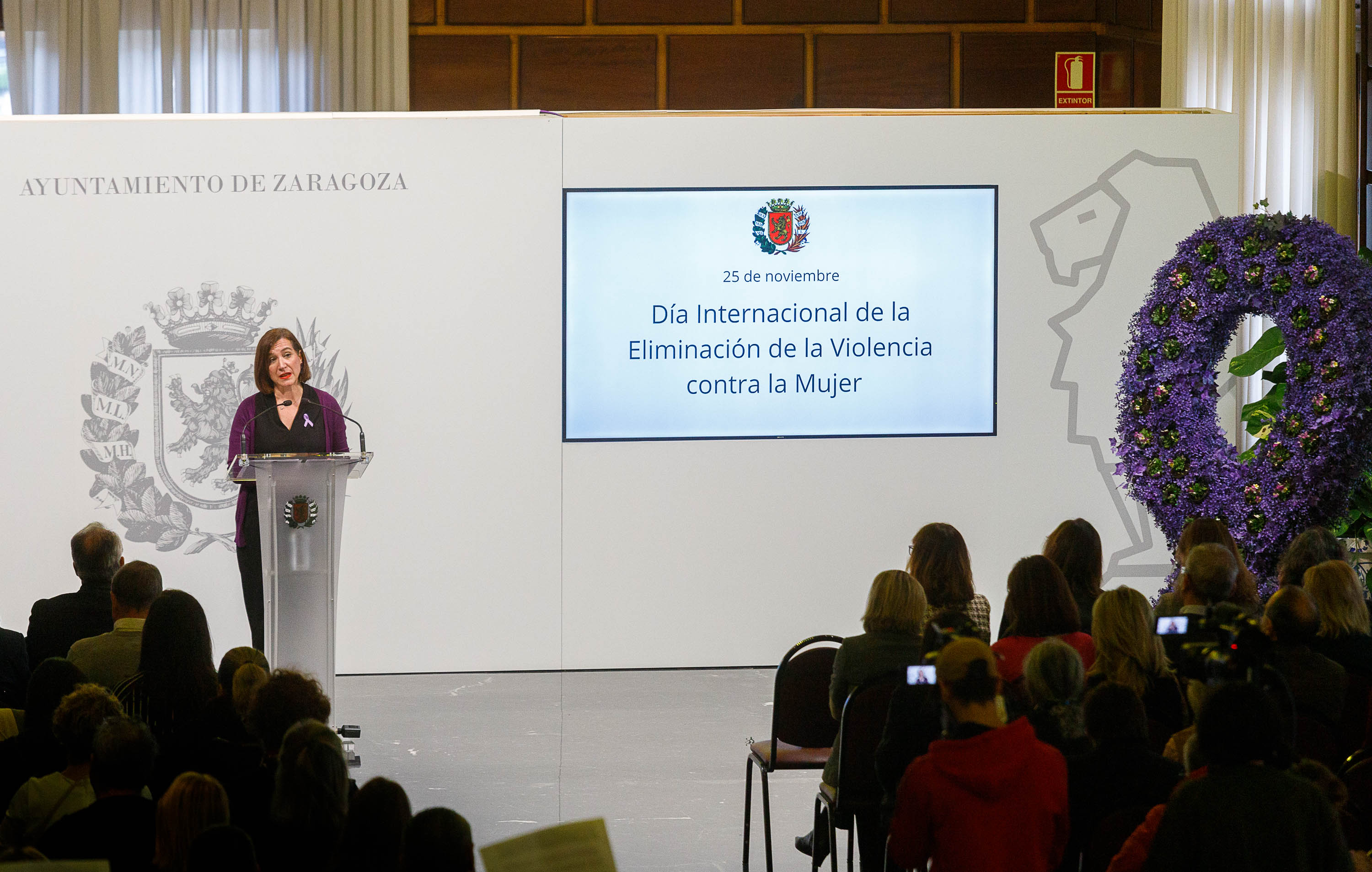 Por su parte, la vicealcaldesa Sara Fernández, quien ha cerrado el acto, ha recordado a todas las víctimas y ha puesto en valor el trabajo del Consistorio en este ámbito: “El Ayuntamiento de Zaragoza ha atendido en lo que llevamos de año a 841 mujeres víctimas de violencia de género a las que presta atención social y psicológica, apoyándoles para recuperar sus vidas”, ha explicado la vicealcaldesa, quien ha añadido que la red municipal de alojamiento temporal -formada por Casa de Acogida, pisos tutelados y viviendas de emergencia- ha acogido este año a 30 mujeres y a 32 menores.