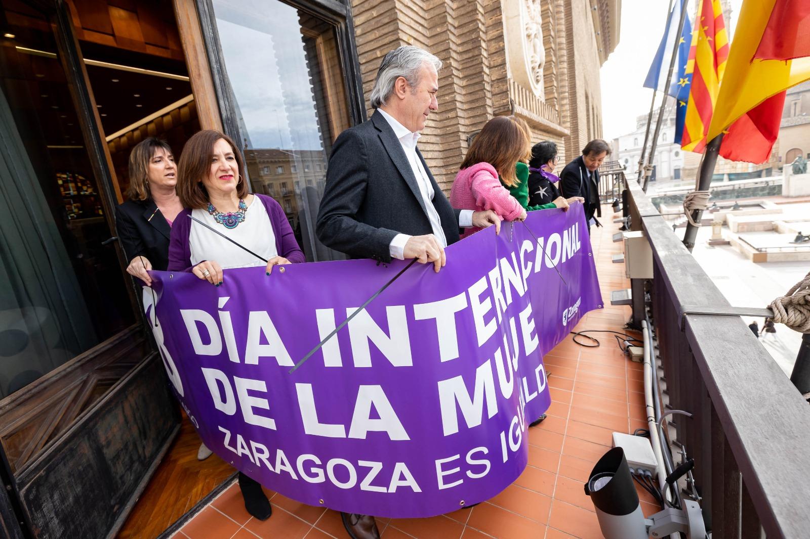 El Ayuntamiento de Zaragoza se ha sumado a la reivindicación del Día Internacional de la Mujer en defensa por la igualdad con la colocación de la pancarta en el balcón principal del Consistorio expresando así el "sentir casi unánime" de toda la ciudad.