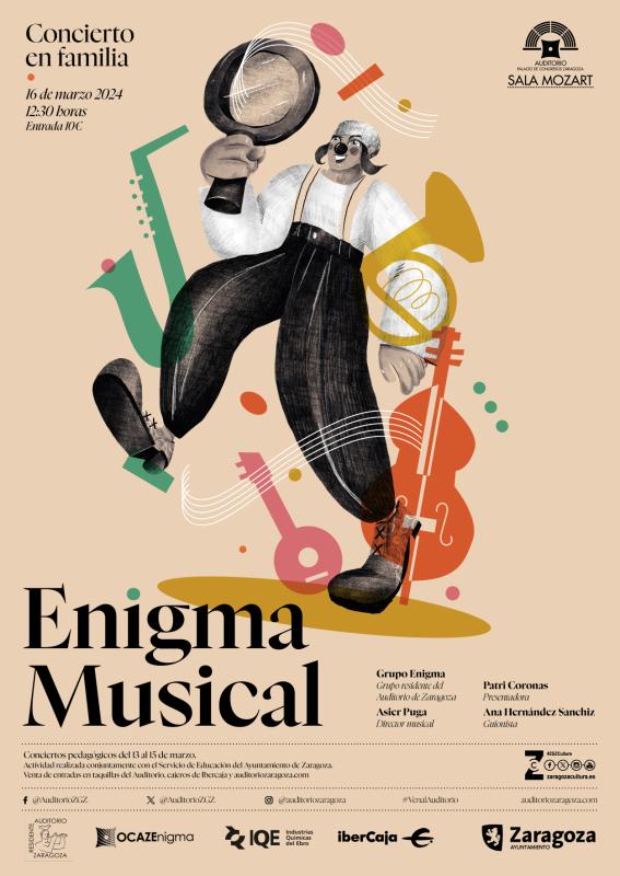 El Grupo Enigma recorre diversos momentos musicales en el nuevo Concierto en Familia. En esta ocasión, el Grupo Enigma (residente del Auditorio) pondrá en escena "Enigma Musical", que dirigirá Asier Puga, presentado por Patri Coronas y guion de Ana Hernández. A través de un juego colaborativo de enigmas musicales, y con la ayuda de una detective musical, la Orquesta de Cámara del Auditorio de Zaragoza - Grupo Enigma propone un recorrido sonoro por diversos momentos musicales, desvelando los enigmas que dieron paso a las evoluciones y transformaciones musicales más relevantes hasta llegar al presente, con la incorporación de las nuevas tecnologías. Cada enigma explorará una obra y un compositor o compositora, con el objetivo de comprender la evolución de la música y de la orquesta. Consigue tus entradas aquí.