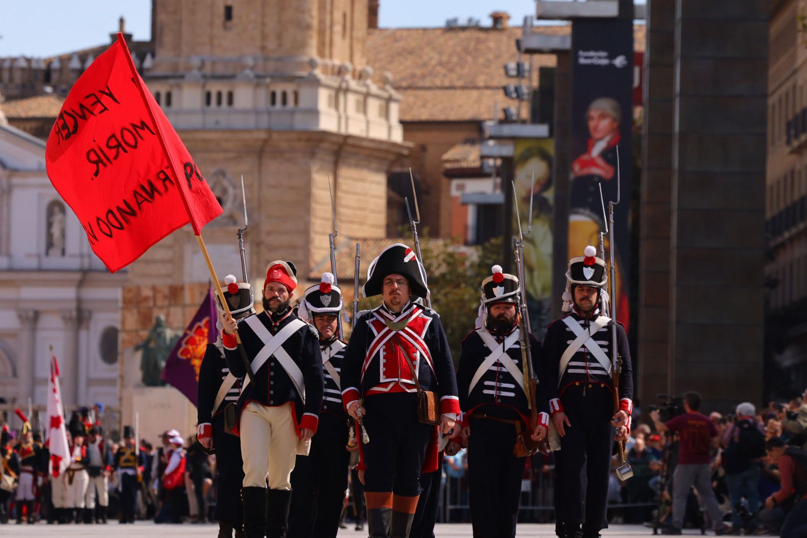 Este sábado 16 de marzo se ha celebrado el desfile, desde las 12,00 horas, por las calles del centro de la ciudad, y seguidamente los grupos participantes han acudido a la plaza del Pilar, donde se han interpretado los himnos, izado de banderas, para finalizar con una descarga de fusilería. Por la tarde, a partir de las 19,00 horas, se iniciará el desfile hacia la batalla, que tendrá lugar a las 19,30 horas con la recreación del primer Sitio en el Coso, entre plaza San Miguel y plaza de España, para prolongarse la batalla por el Coso alto, calle Alfonso y hasta la palza del Pilar.
