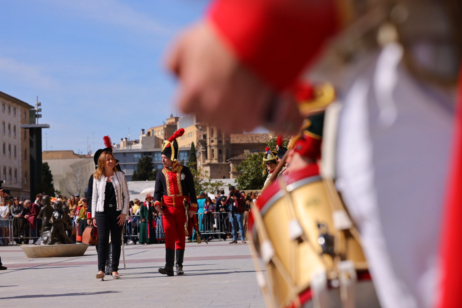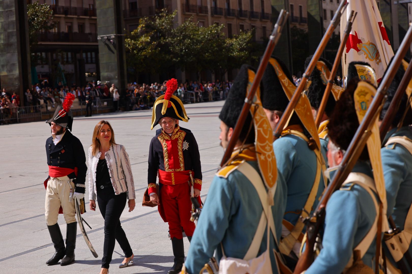 "En esta Plaza del Pilar, en este emblemático escenario convertido hoy en escaparate de nuestra ciudad, nos encontramos inmersos en un viaje en el tiempo, una recreación de uno de los capítulos más importantes y trascendentales de nuestra historia. Los Sitios de Zaragoza representan uno de los episodios más heroicos y desgarradores de nuestra historia. En aquellos días oscuros, nuestra ciudad fue sitiada por las tropas napoleónicas, y su gente, liderada valientemente por el General Palafox, defendió con uñas y dientes cada calle, cada plaza, cada rincón de nuestra amada Zaragoza", ha expresado la alcaldesa.