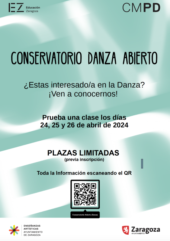 Las fechas para apuntarse van del 12 al 17 de abril y es necesario rellenar un formulario disponible en la web del Conservatorio: https://www.zaragoza.es/sede/portal/ensenanzas-artisticas/cmpd/ Las clases se realizarán los días 24, 25 y 26.