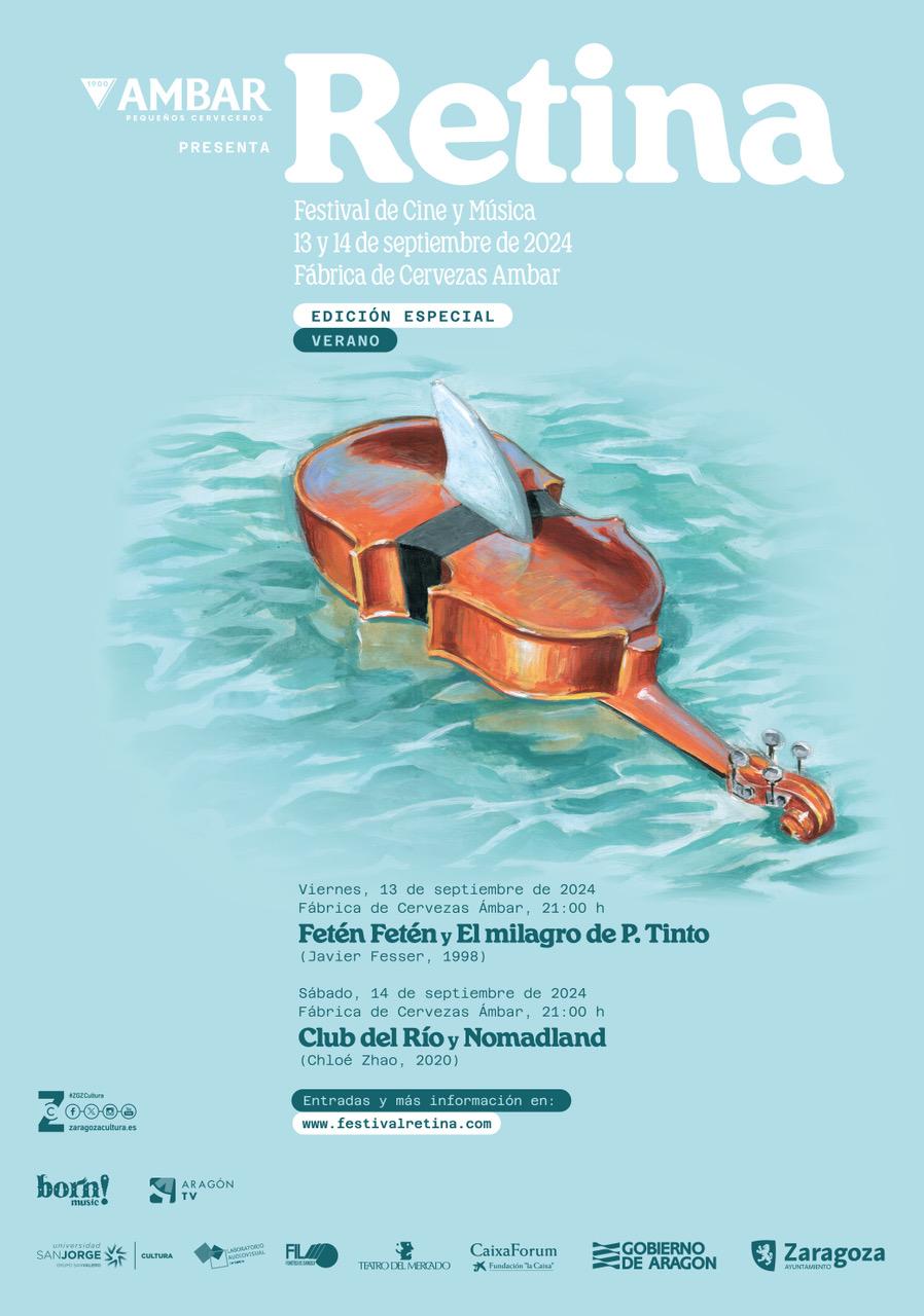 Retina, el Festival de Cine y Música de Zaragoza celebrará los próximos 13 y 14 de septiembre una edición veraniega. 'El milagro de P. Tinto' con Fetén Fetén y 'Nomadland' con Club del Río son las películas elegidas para disfrutar de esta versión que se desarrollará, por primera vez, en el espacio abierto de la Fábrica de Cervezas Ambar (calle Ramón Berenguer IV de Zaragoza) y al aire libre en formato cine de verano.