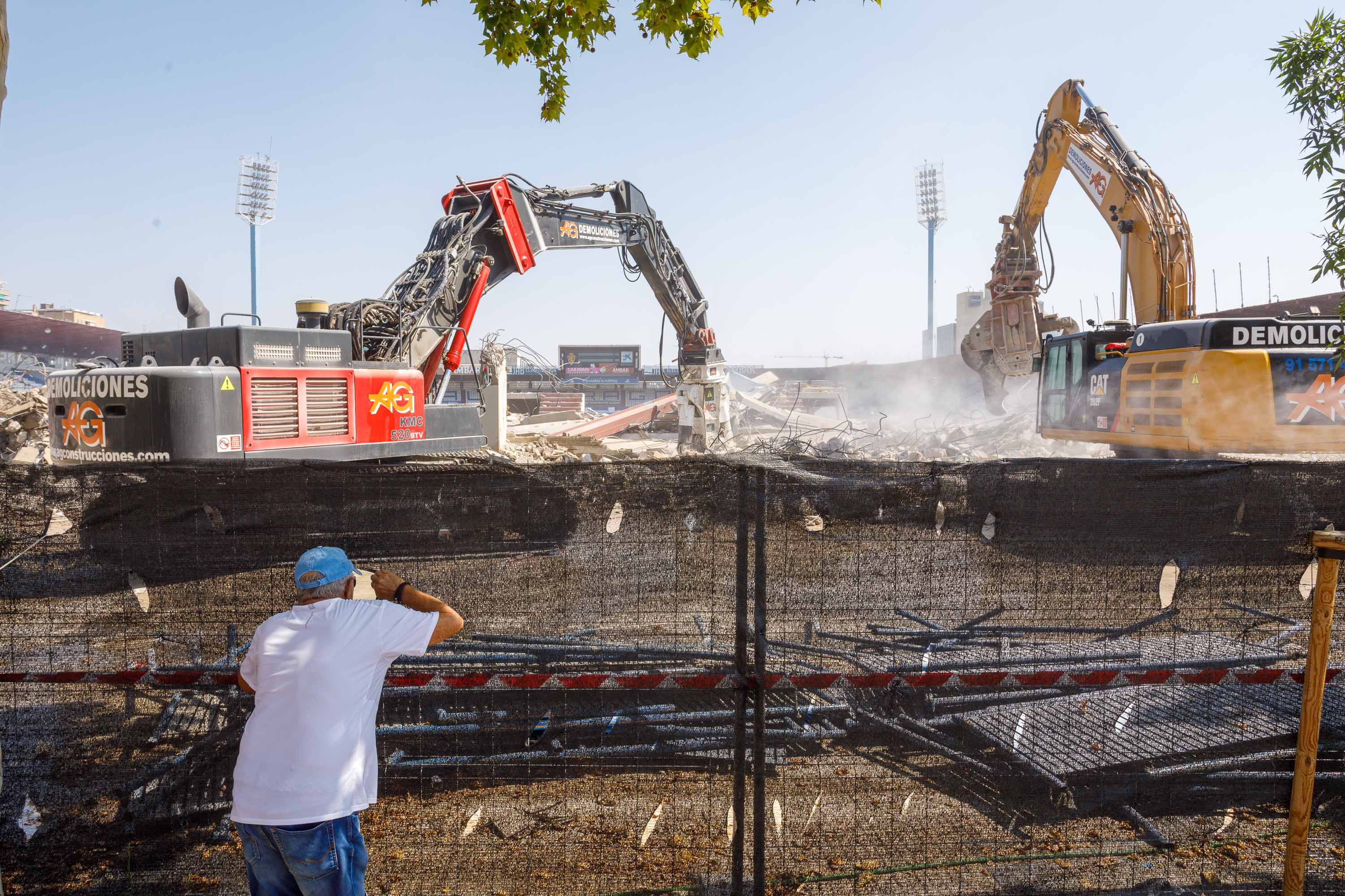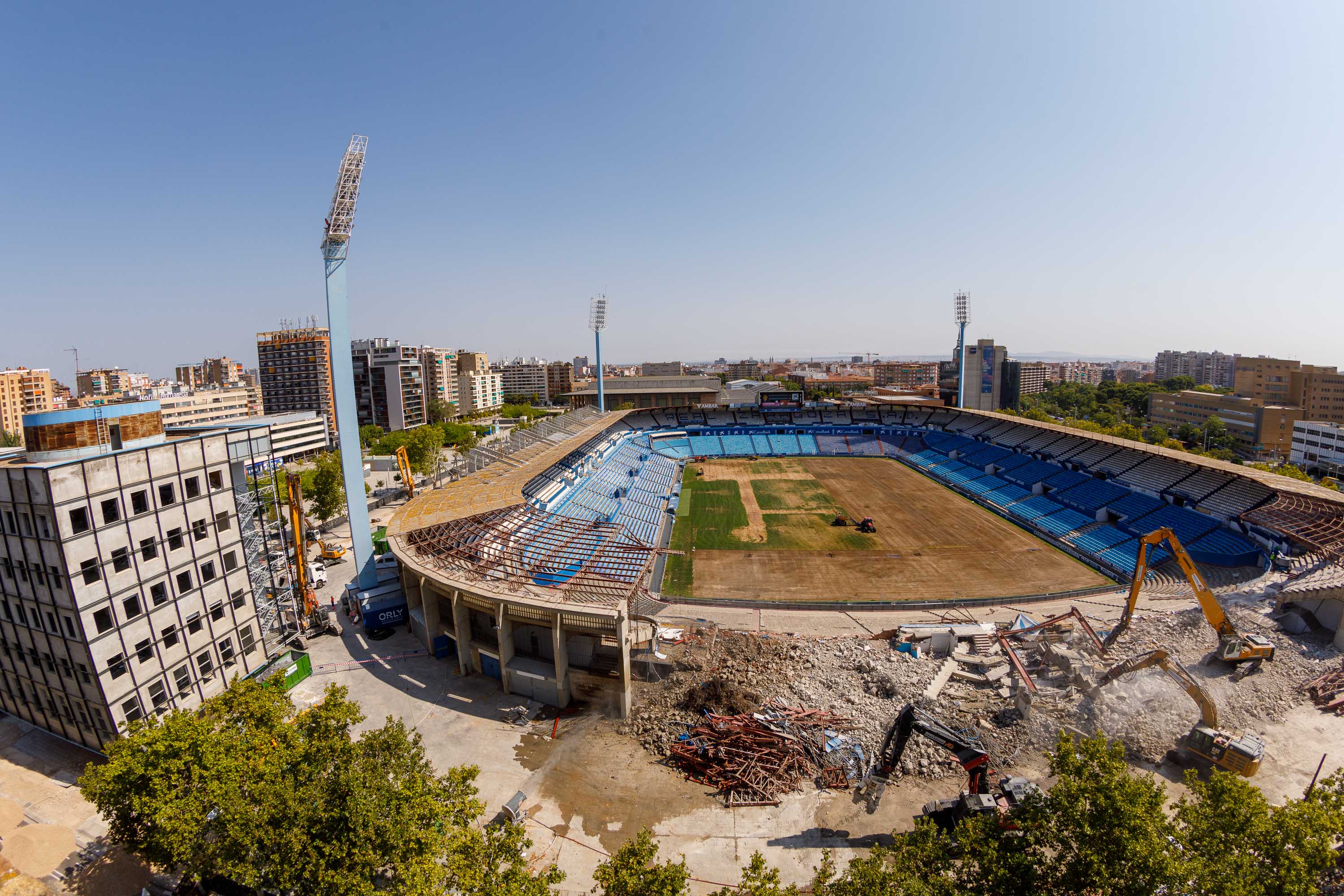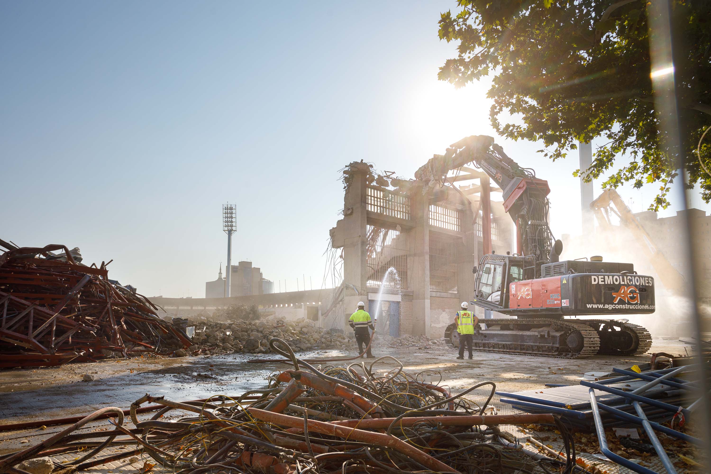 La ejecución de esta primera fase, denominada 1A, mantiene, tal y como ha explicado Chueca, un buen ritmo de ejecución y ha obtenido ya diferentes hitos en la consecución de los derribos que cuentan con un presupuesto total de 3,1 millones de euros. Desde que el pasado 8 de julio comenzara el movimiento de maquinaria alrededor del estadio, se han producido avances conforme a lo planificado por las empresas que lo están ejecutando, la UTE OHLA-Deltapunt 3000: