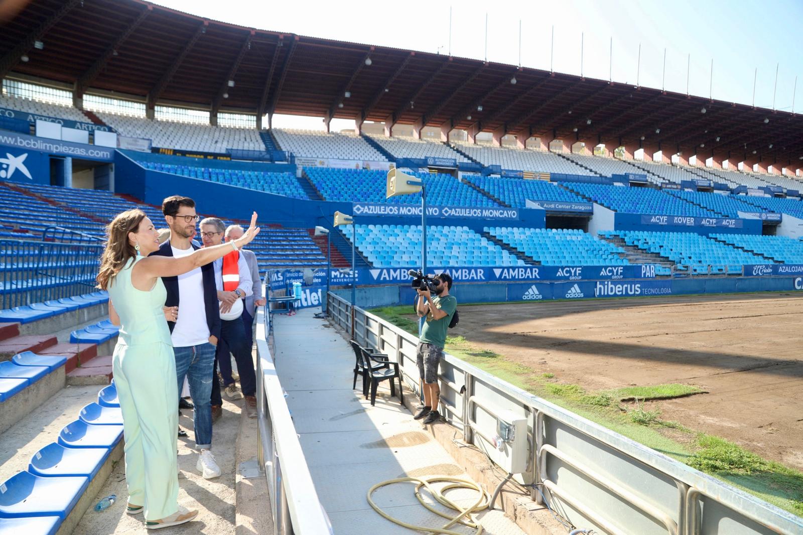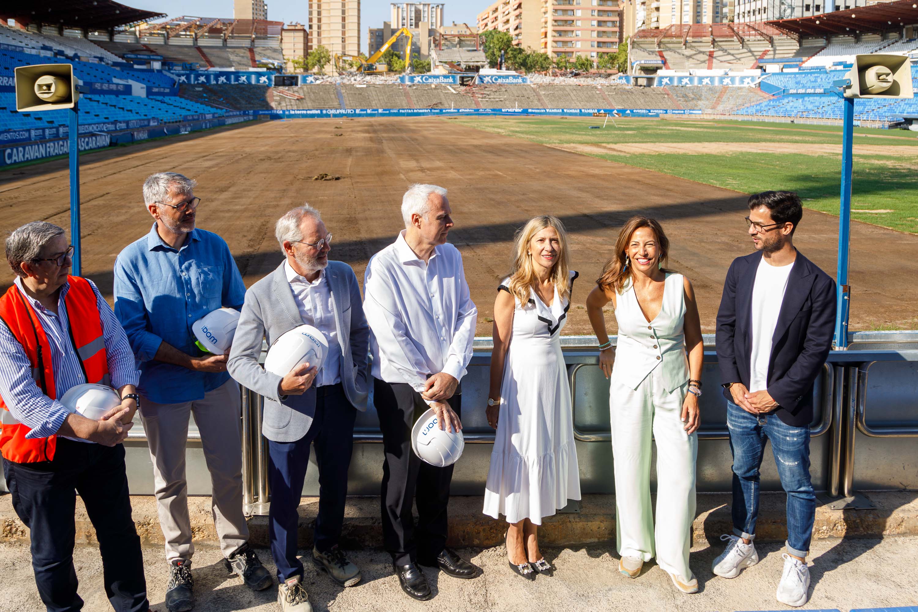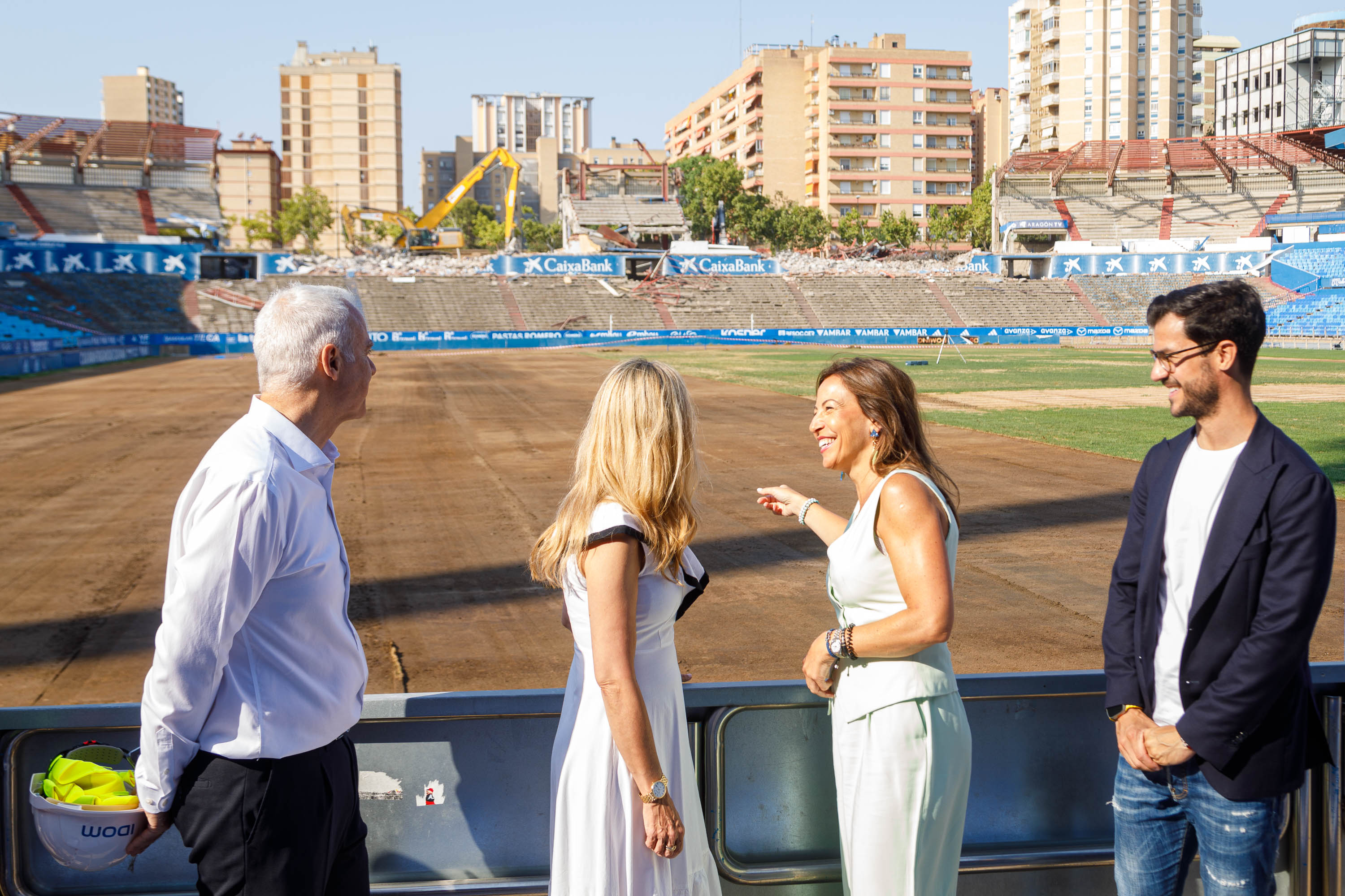Al cumplirse el primer mes desde que se pusieran en marcha los trabajos de demolición de La Romareda, la presidenta de la sociedad La Nueva Romareda y alcaldesa de Zaragoza, Natalia Chueca, ha visitado la evolución de estas labores acompañada por la vicepresidenta del Gobierno de Aragón, Mar Vaquero, el director general del Real Zaragoza, Fernando López, y el gerente de la Sociedad La Nueva Romareda SL, Martín Fuica.