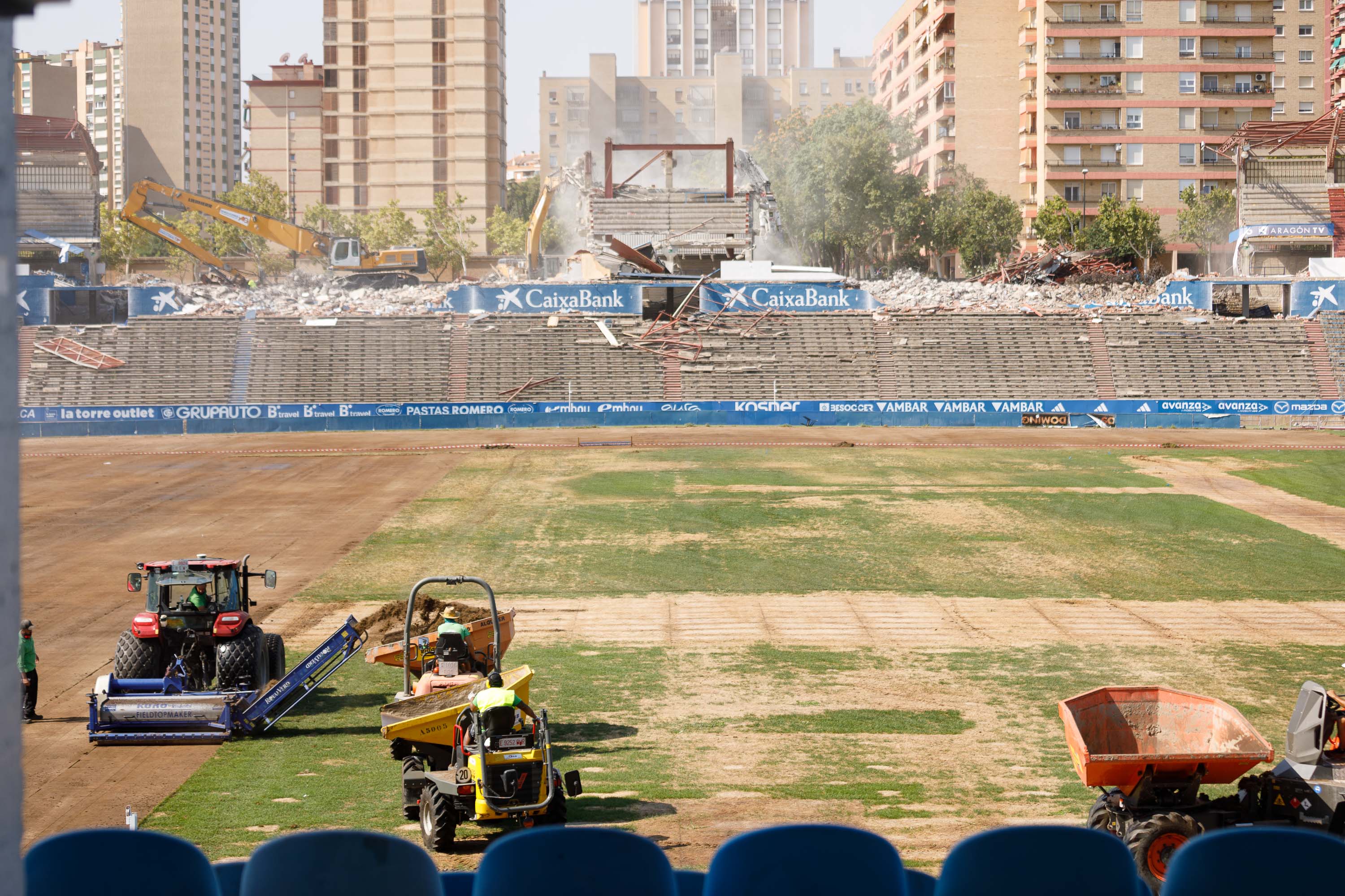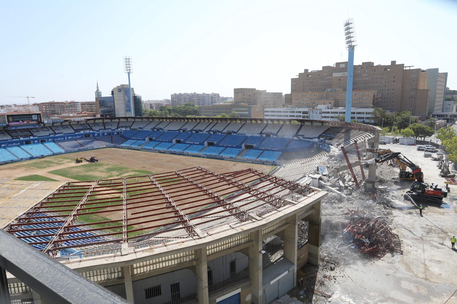 El derribo completo de la antigua Gerencia de Urbanismo y los trabajos en el Fondo Sur marcan el primer mes de demoliciones de La Romareda