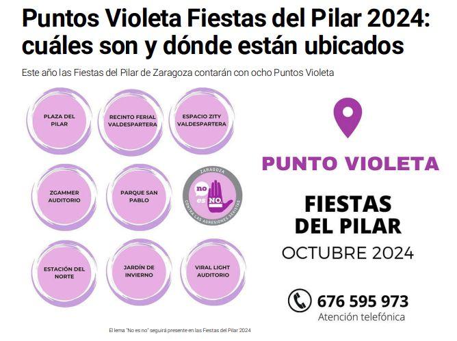 Se colocarán 8 puntos violetas en el recinto Ferial, Espacio Zity, Plaza del Pilar, Jardín de Invierno, Parque San Pablo, Zgamer, Estación del Norte y Fiesta Viral Light