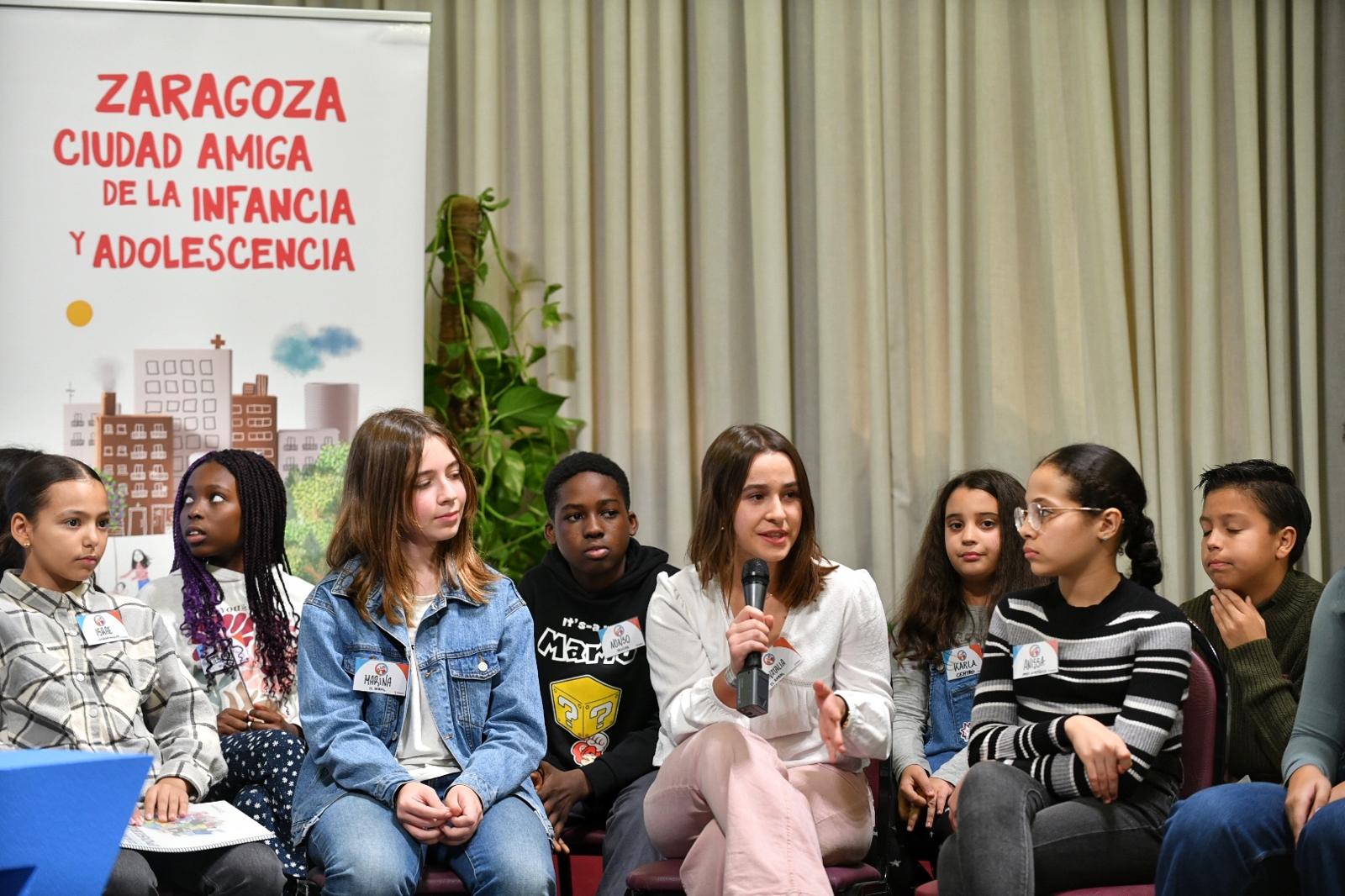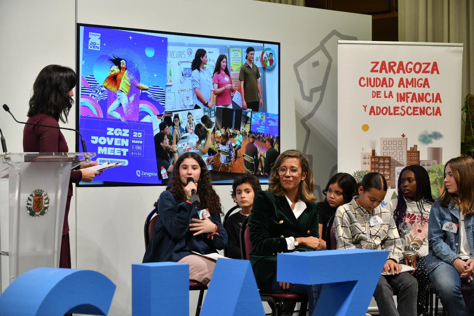 La consejera de Políticas Sociales, Marian Orós, ha presidido la jornada de este órgano participativo cuyo objetivo es promover la colaboración de los menores en las políticas municipales y seguir avanzando en los compromisos que Zaragoza adquirió como Ciudad Amiga de la Infancia y la Adolescencia, sello concedido por UNICEF en reconocimiento a las iniciativas locales impulsadas en este ámbito. También han asistido la concejal delegada de Juventud, Ruth Bravo, el presidente de UNICEF en Aragón, José Manuel Pomar, y representantes de los grupos municipales.