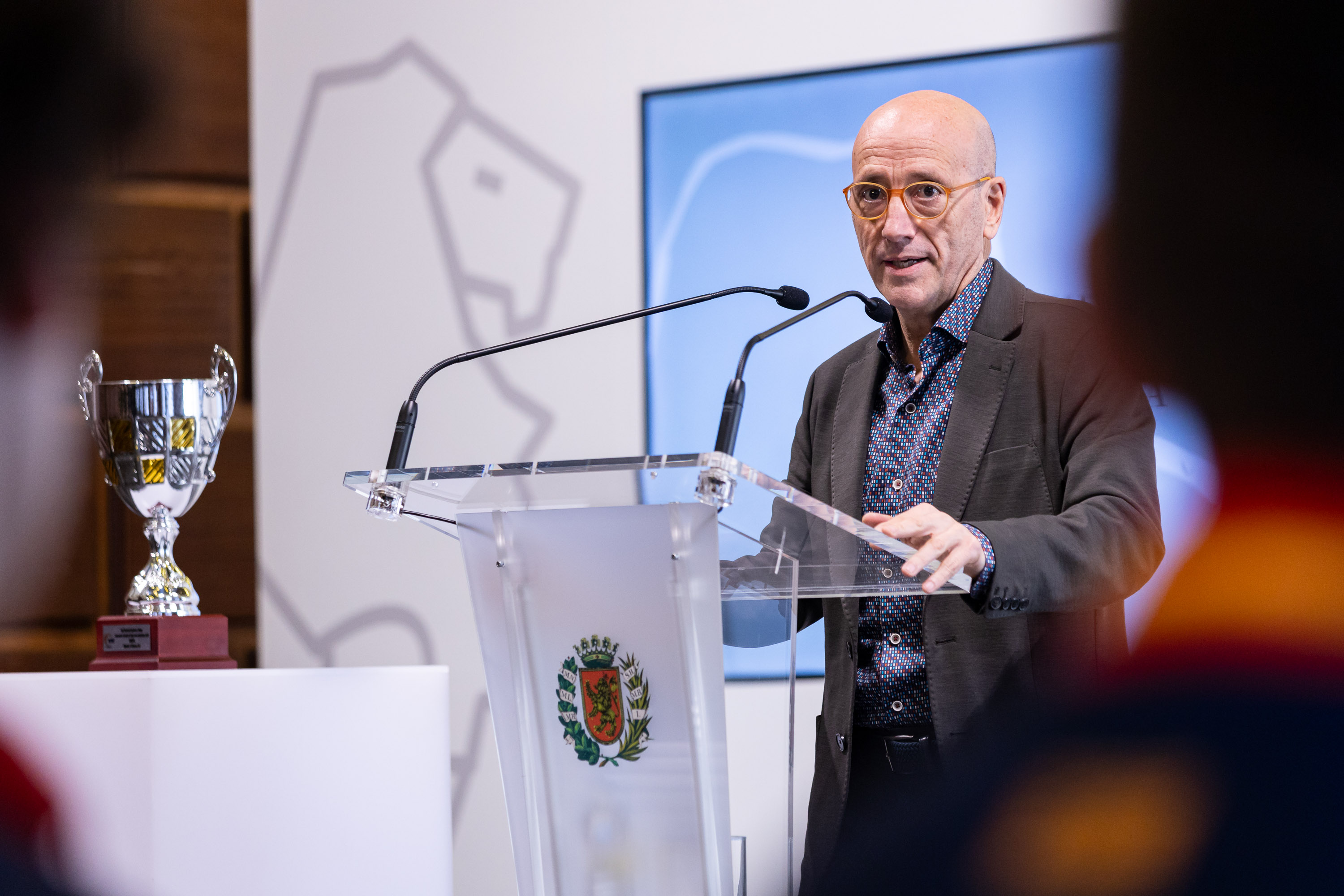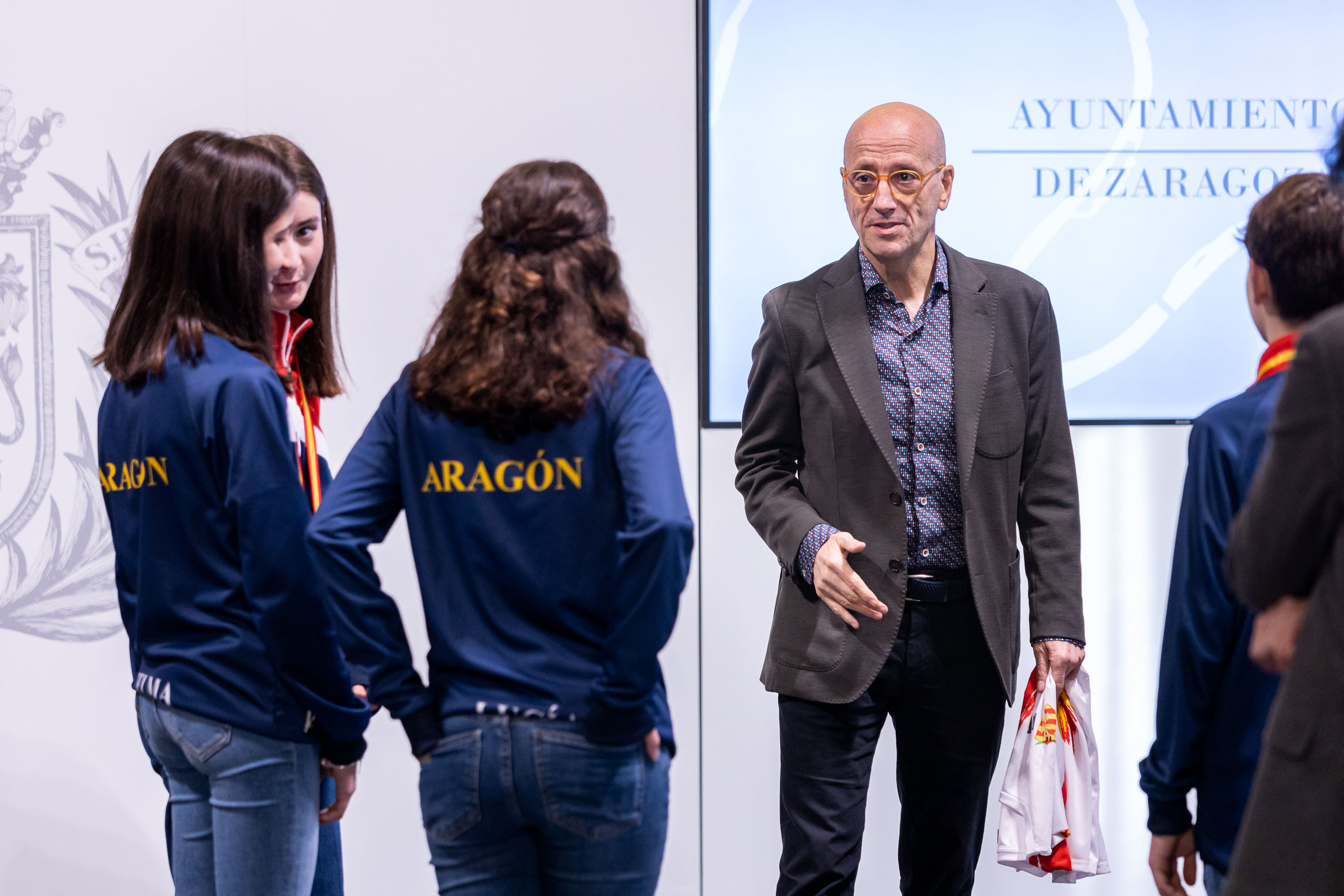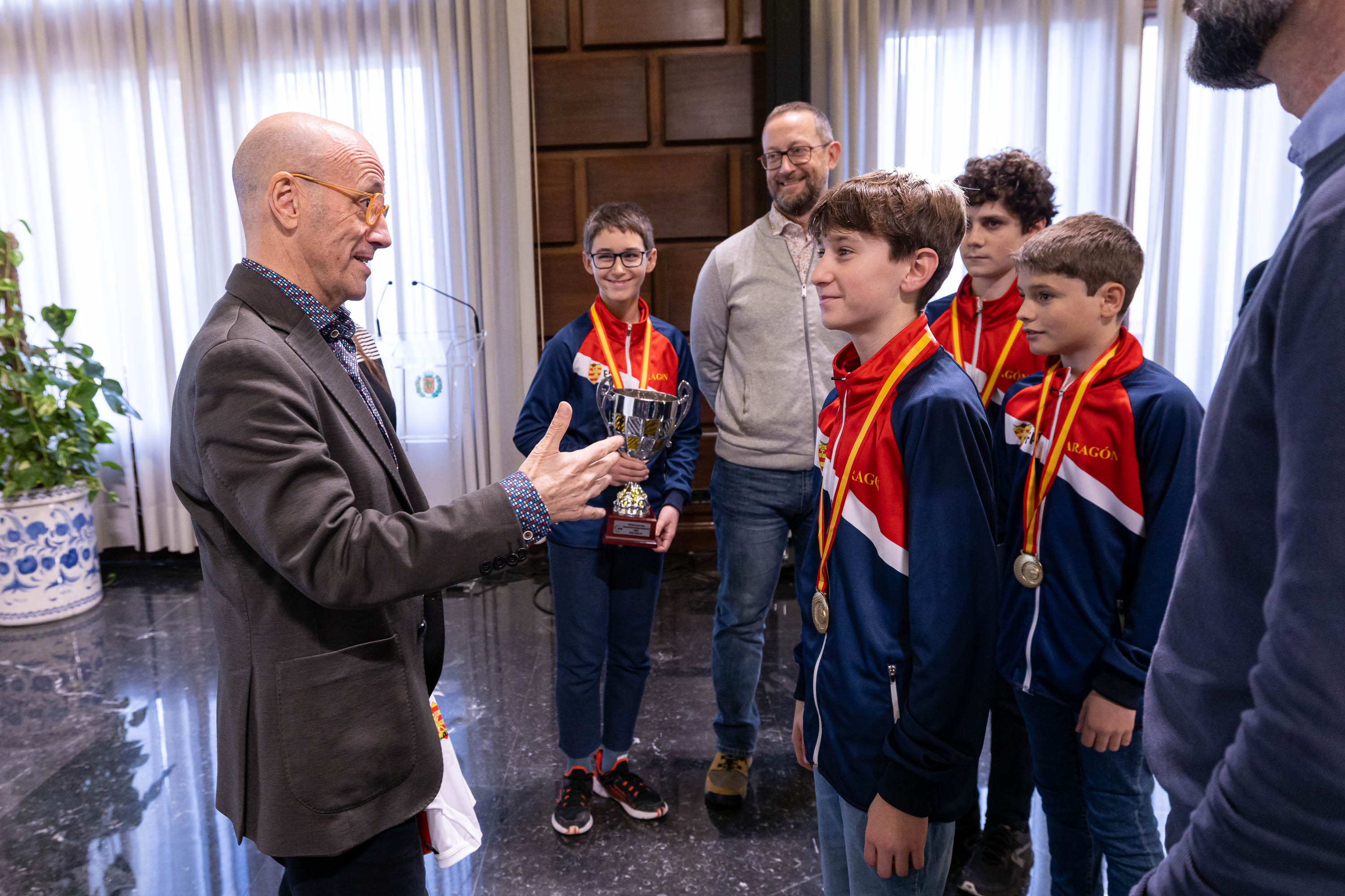 El Ayuntamiento de Zaragoza ha recibido hoy a los siete patinadores del club Zlalom que se han proclamado campeones de España de selecciones autonómicas sub14 en modalidad Inline Freestyle. El acto ha sido presidido por el concejal delegado de Deportes, Félix Brocate, quien ha felicitado a los jóvenes patinadores de Zaragoza y les ha animado seguir trabajando y disfrutando del deporte.