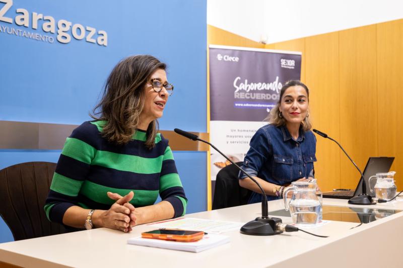 El Ayuntamiento de Zaragoza ha acogido esta mañana la presentación del proyecto 'Saboreando Recuerdos', una iniciativa impulsada por Senior Servicios Integrales, compañía responsable de la gestión del Servicio de Ayuda a Domicilio (SAD) municipal. En la rueda de prensa han comparecido la consejera de Políticas Sociales, Marian Orós, ya la delegada social de Senior Servicios Integrales, Laura Cantero.
