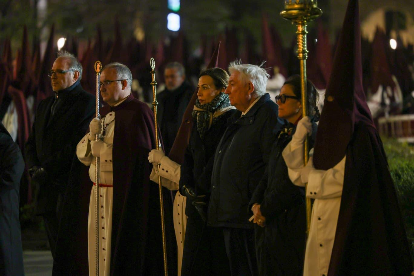 La alcaldesa de Zaragoza, Natalia Chueca, ha querido estar presente en la tarde recogida del Lunes Santo zaragozano,donde la Cofradía de Jesús Camino del Calvario volvió a poner en la calle una de sus citas más íntimas y catequéticas: la procesión de las Tres Caídas.