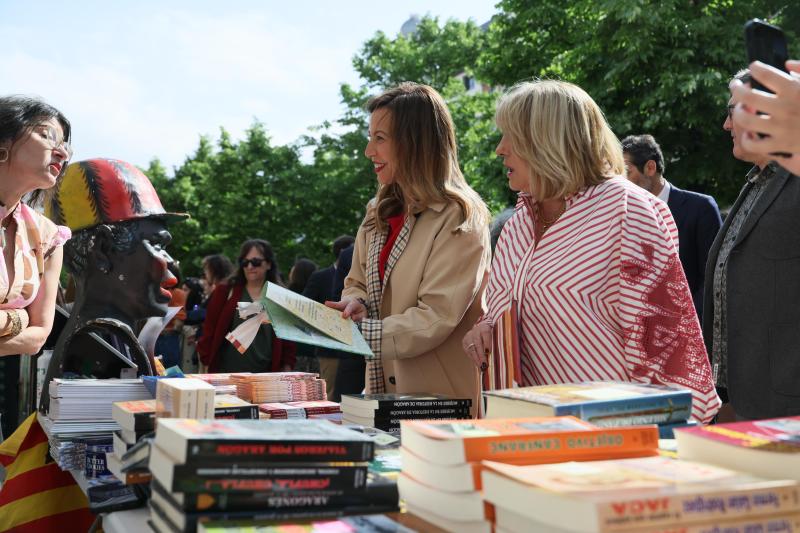 El enfoque literario que adquiere la celebración del patrón de Aragón, San Jorge, con el Día del Libro en el centro de Zaragoza, ha vuelto a congregar a miles de personas en torno a la cultura y a quienes, en este caso, la propician: escritores, editores y colectivos relacionados con la literatura. La alcaldesa, Natalia Chueca, ha querido compartir este día en el que los vecinos de la ciudad se arremolinan en el Paseo de la Independencia en busca de nuevas historias y sus autores de referencia. La regidora ha recorrido esta feria organizada por COPELI, la Comisión Permanente del Libro con el apoyo del Ayuntamiento de Zaragoza, el Gobierno de Aragón y la Diputación de Zaragoza.