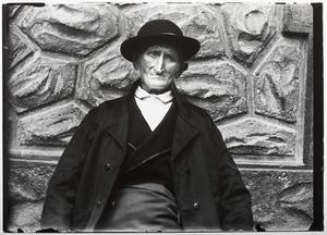 VILLANÚA. PASTOR EN "GABARDITO". AL FONDO LOS PICOS DE LECHERIN (Compairé Escartín, Ricardo)