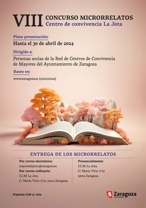 Con el objetivo de ofrecer ocio alternativo para las personas mayores y crear un cauce de actividades intelectualmente estimulantes y creativas que fomenten un envejecimiento activo y saludable, el Excmo Ayuntamiento de Zaragoza organiza por octavo año este concurso de microrrelatos con el que se pretende dar oportunidad a todas las personas socias de los Centros de Convivencia de Mayores de la ciudad, de expresar por escrito sus recuerdos, vivencias, sueños, deseos, inquietudes...