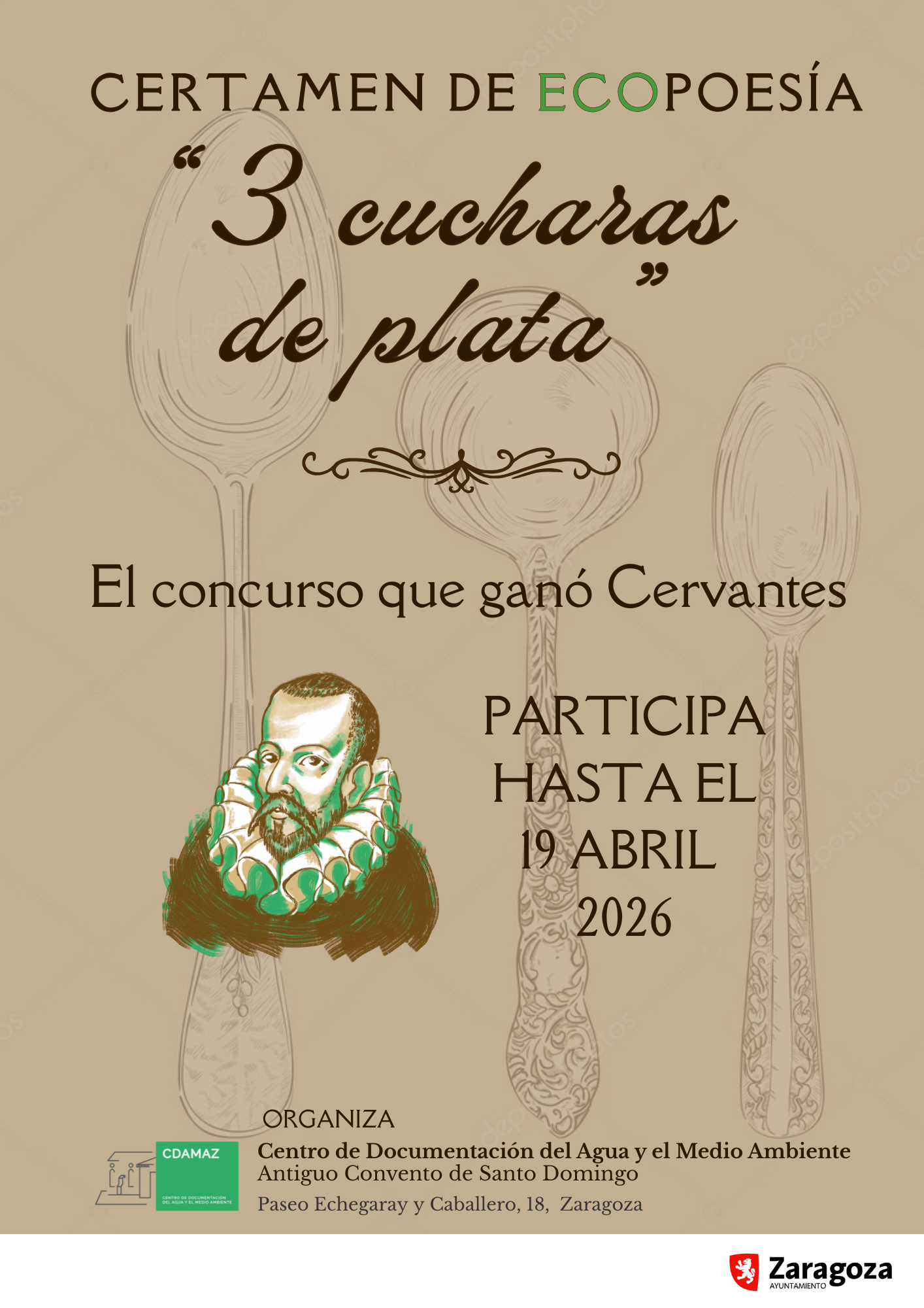 Con motivo del Día Mundial de la Poesía (21 de marzo) y en conmemoración del Día del Libro (23 de abril), el Centro de Documentación del Agua y el Medio Ambiente (CDAMAZ) convoca el Certamen Literario "3 Cucharas de Plata", un homenaje a la creación poética y a la tradición literaria que, en 1595, vio triunfar a Miguel de Cervantes en este mismo lugar: el histórico Convento de Santo Domingo.