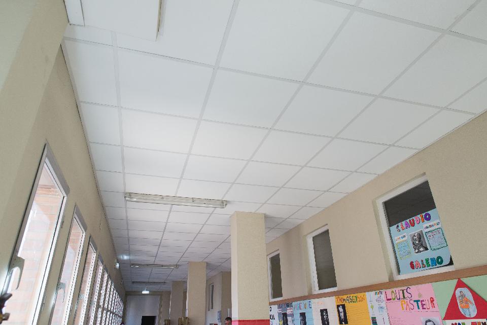 Necesitamos instalar un doble techo en la última planta del colegio ya que hay un techo alto de uralita que deja pasar el frío en invierno y el calor en verano.