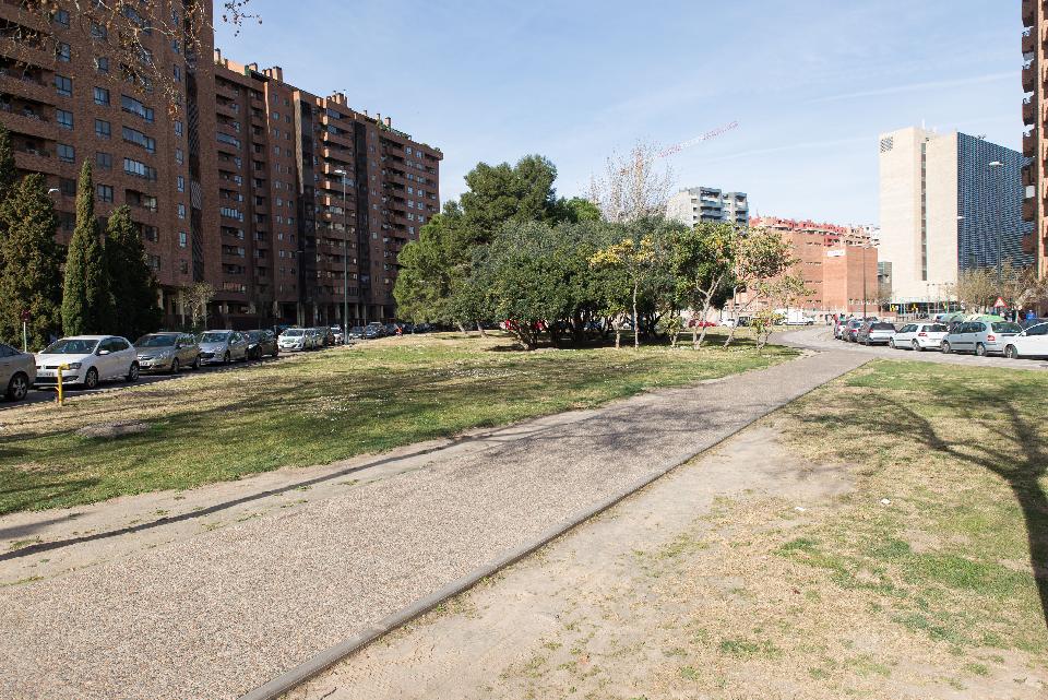 Hay una zona ajardinada en la confluencia de las calles Condes de Aragón, Juan Pablo II y Juan Carlos I, por donde los peatones circulan, habiendo creado una zona de paso, a través de la zona ajardinada, de 5 metros de ancho por 30 de ancho, aproximadamente. Este paso creado comunica la Calle Condes de Aragón con la Calle Juan Carlos I, transversalmente.