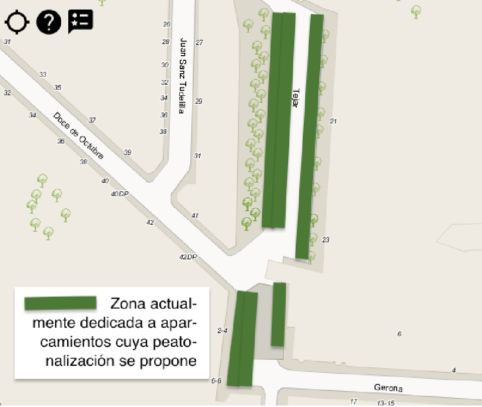 Ganar espacio para el peatón, mejorar las calles y plazas del barrio y lograr una ciudad más amable donde los aparcamientos en superficie sean la excepción en aquellas zonas donde las aceras son estrechas.
