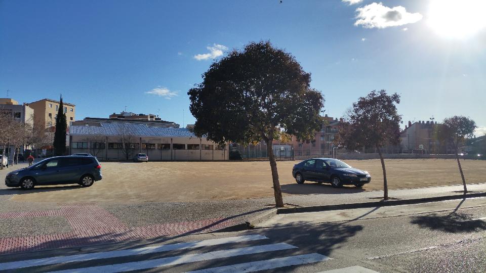 Zona descampada al costado del centro de salud de Valdefierro (Calle Orión) que se está usando de parking, provocando mal aspecto en la zona ya que levanta polvo y barro al llover.