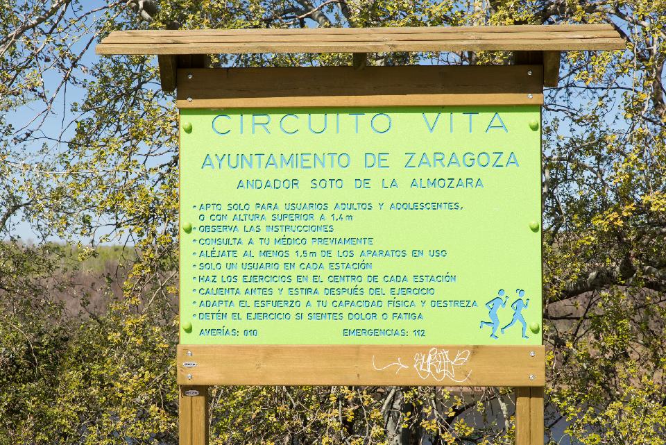 Descripción informe técnico: Equipamiento deportivo del tipo circuito Vita en el camino peatonal junto al Ebro. Expediente 124443-17.