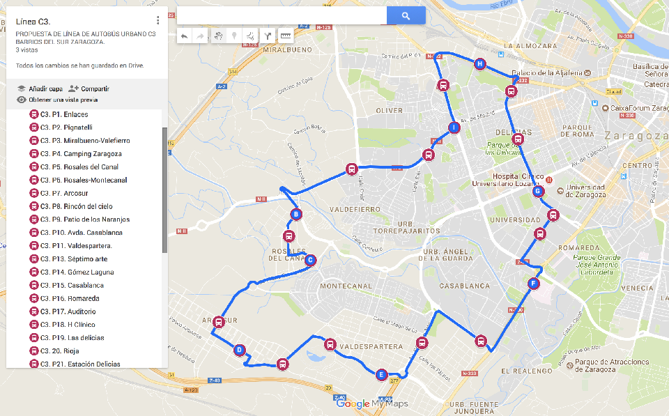 Amplia población de los barrios del sur. Así como las zonas de la Zaragoza consolidada por donde pasaría la línea.