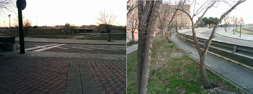 Actualmente la forma más rápida de acceder a Ruiz Picasso desde las calles citadas anteriormente es a través de una estrecha acera de poco + de un metro de ancho delimitada por un quitamiedos!!!!