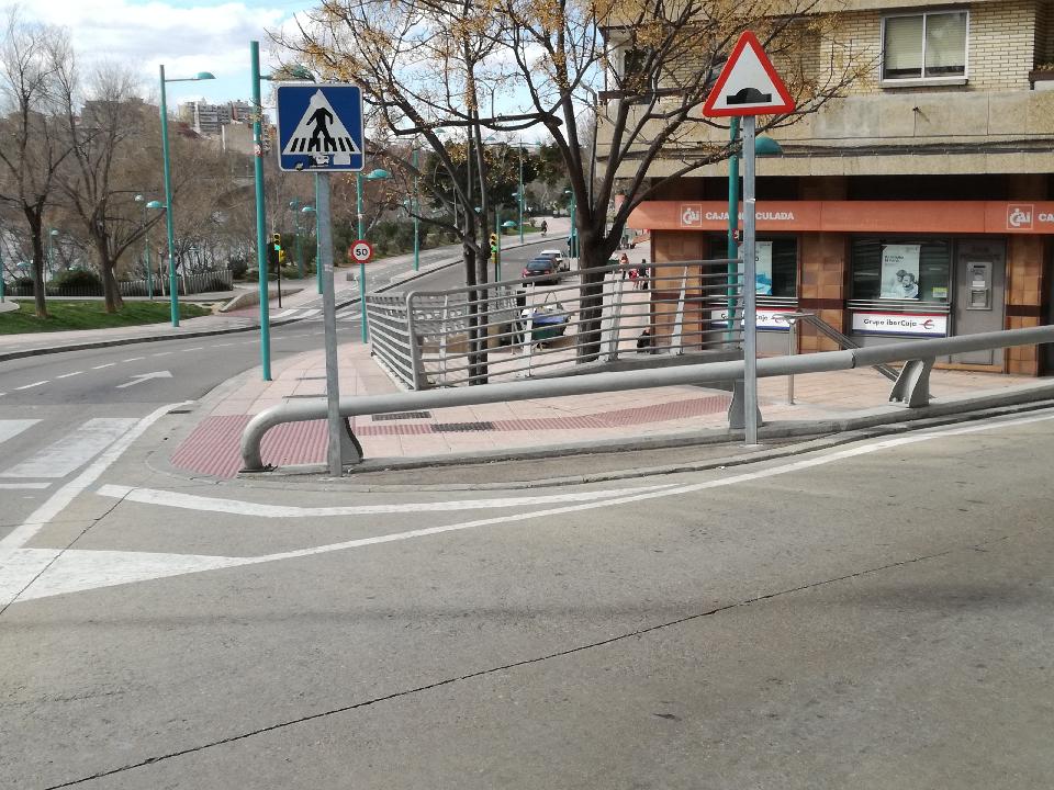 Paso de peatones en el P° de la Ribera al comienzo de Sixto Celorrio
