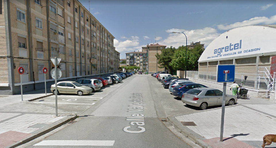 En el tramo de entrada de vehículos a la calle Valle de Gistaín comprendido entre los números 39 y 41 de la Av. San Juan de la Peña, propongo la creación de delimitación de zonas de aparcamiento en batería ya existentes.