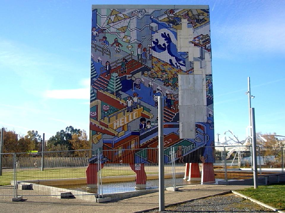 El mosaico Ciudades de Agua pertenecía a una de las plazas temáticas que formó parte de la Expo, su original escultura se dejó de forma permanente en el recinto. Debido al fuerte viento que sopla en la zona, algunas de sus placas se han desprendido. Propongo su sencilla reparación, que consistiría en recoger las placas desprendidas que se encuentran en el estanque que lo rodea y pegarlas con un material más resistente para evitar que vuelvan a desprenderse. También se podrían revisar el resto de placas de la estructura y fijarlas mejor, en caso de que fuera necesario, para evitar que se suelten.