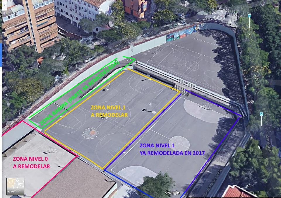 * terminar la zona de nivel uno donde se encuentra los campos de baloncesto y multideporte para dar cabida a otros deportes además del fútbol, así como deportes alternativos.