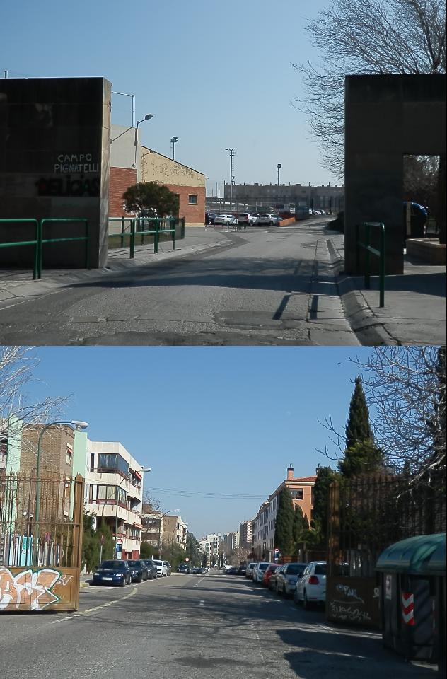 Entre la calle Monasterio de Nuestra Señora de los Ángeles y la calle Jarque de Moncayo hay unas puertas metálicas que nunca se cierran. Por dicha calle pasan autobuses que tienen muy poco espacio para pasar. Se propone retirar las puertas metálicas y retirar los estrechamientos de la calle.