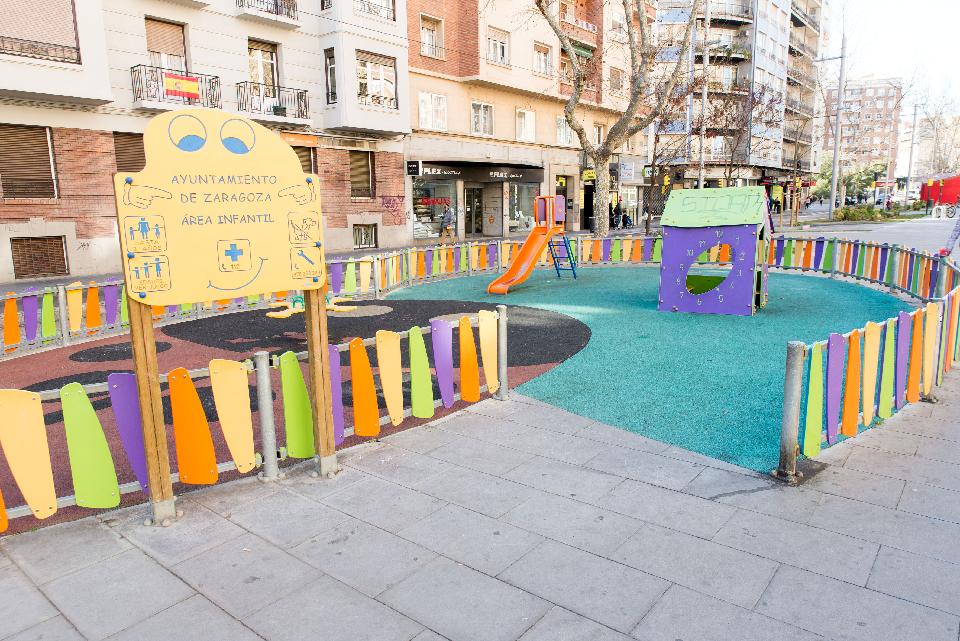 Reparación del suelo en los juegos infantiles de gran vía y poner papeleras en los mismos, y su ampliación