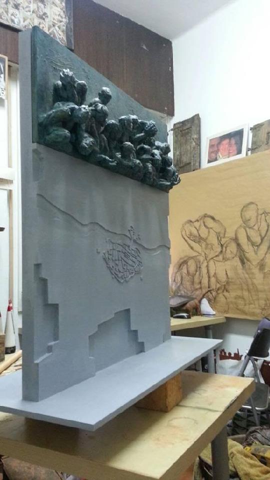 El proyecto consiste en un friso en altorrelieve de bronce (de 300 x 106 cm) del que surgen unas figuras en actitud doliente que expresan el sufrimiento del pueblo zaragozano a consecuencia de la guerra. El friso de bronce estaría colgado de un gran bloque de cemento armado, texturizado por el artista que sería construido por las brigadas del ayuntamiento.