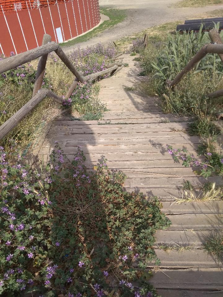 ESCALERAS DE MADERA DE ACCESO AL PASO ELEVADO DEL TREN ESTÁN ROTAS, SUCIAS Y SIN CONSERVACIÓN DESDE SU CONSTRUCCIÓN.