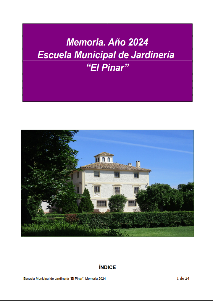 Memoria 2024. Escuela de Jardinería El Pinar