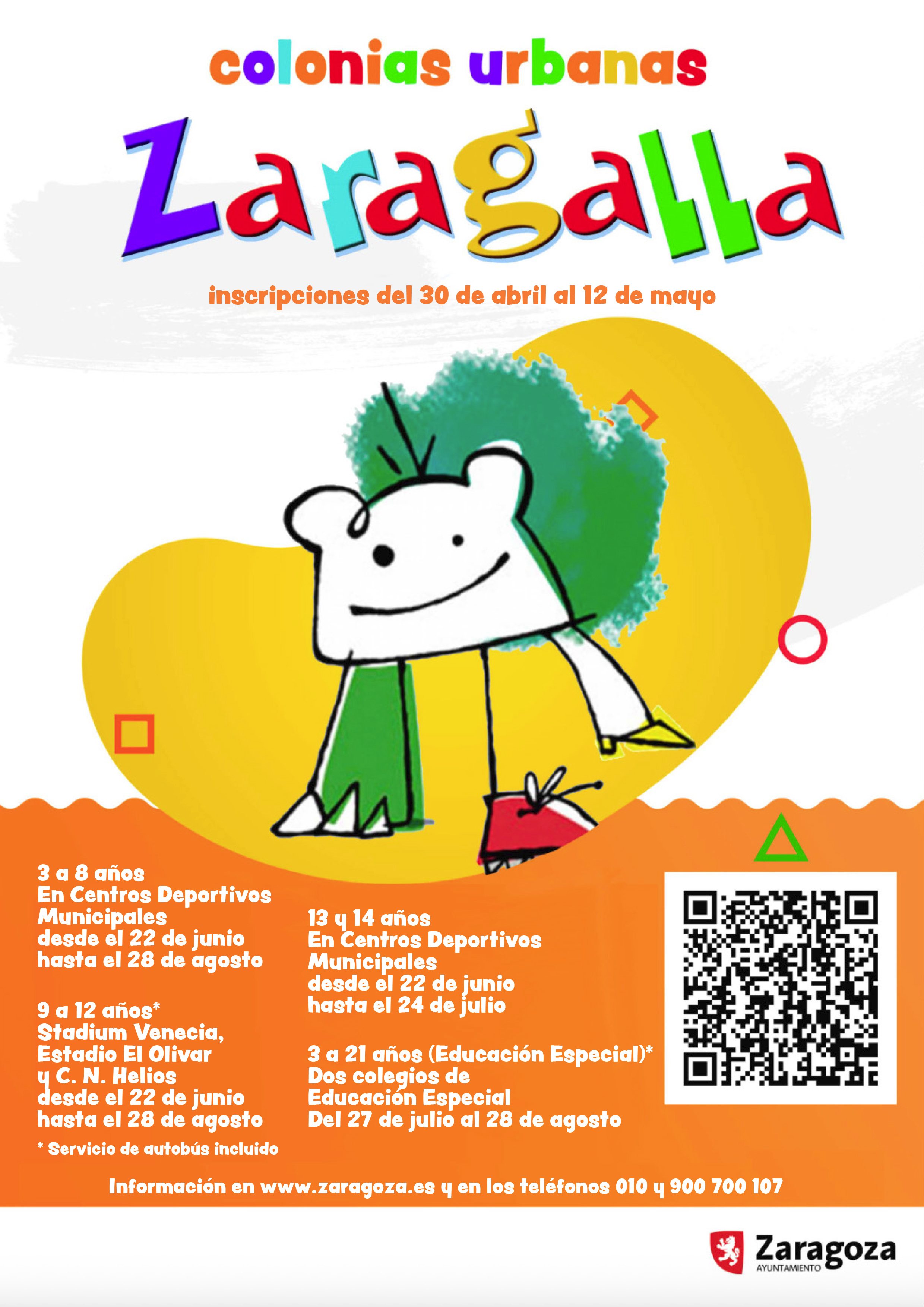 ZARAGALLAZaragalla es una actividad del Área de Políticas Sociales del Ayuntamiento de Zaragoza que da apoyo a las familias en el verano, con el objetivo de conciliar la vida laboral y familiar, ofreciendo un amplio programa lúdico-educativo, ubicado en diferentes instalaciones, que permite cubrir las necesidades de los/las padres/madres en cuanto a la custodia de los/las niños/as, manteniendo el horario escolar del curso y cubrir además, las necesidades de ocio y esparcimiento de los niños y niñas durante el periodo vacacional.