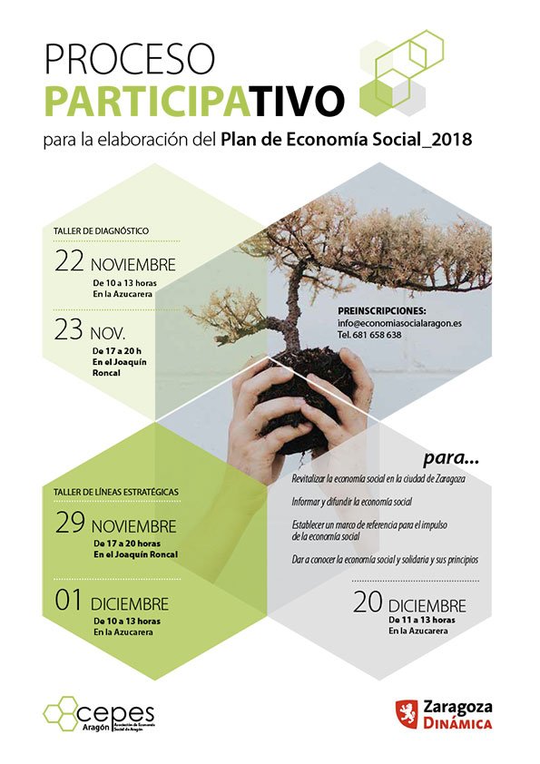 Proceso participativo para la elaboración del Plan de Economía Social de Zaragoza, impulsado por CEPES Aragón (Asociación de Economía Social) y Zaragoza Dinámica.