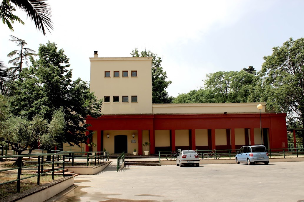 Dentro de este anfiteatro natural bordeado por el rio Huerva, que conforma topográficamente el Rincón de Goya, se integra el primer edificio perteneciente al Movimiento Moderno de arquitectura construido en España. Esta construcción es reflejo de cómo las tendencias racionalistas de la arquitectura Europea llegaron a nuestro país y en concreto a Zaragoza. Es una arquitectura caracterizada por la sencillez y la claridad compositiva, la utilización de formas cúbicas, la búsqueda de espacios dinámicos y el juego de claros y oscuros en sus fachadas, utilizando para ello materiales como el hormigón y el vidrio. En todo caso, el edificio actual del Rincón de Goya ha recibido sucesivas reformas que han modificado su diseño originario, no obstante son numerosas las fotografías conservadas de la época, las cuales nos permiten acércanos a la concepción moderna de García Mercadal. Junto a este edificio, se sitúa un pequeño jardín y una explanada que actúa como punto más extendido de descanso en el parque.