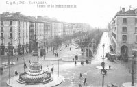 The old San Francisco Square - later on Constitución and currently España Square- is the starting point of this route. At the centre, we find one of the first big commemorative monuments erected in Zaragoza: the Monument to the Martyrs of Religion and the Country . Unveiled in October 1904, and, therefore, contemporary to the near Monument to the Justiciazgo, it links the Christian to the patriotic feeling, making reference to past events of the city. It is important to mention previous ornamental and commemorative elements that occupied this central square. Firstly and closely related to what this monument represents, there was the Coso Cross, destroyed during the Independence War, and built to remember the "countless martyrs" who, according to tradition, gave their lives defending their faith at the beginning of the 4th century, and whose rests are worshipped in Zaragoza from then on with those of Santa Engracia. The so-called Princess Fountain or Neptune Fountain , was built in the 19th century and served to supply water to the population, and as memory and homage to Princess Isabel. Even though the fountain was not placed at the center of the square, it was dismantled and replaced by the monument we can see today.