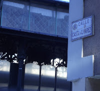 Es otro monumento conmemorativo la siguiente pieza que va conformando nuestro itinerario y que encontramos en la calle Abén Aire, ante el edificio de la Delegación Territorial en Aragón de la Organización Nacional de Ciegos. Se trata del Monumento a Antonio Vicente Mosquete , una obra de Isabel Queralt y Pilar Pérez Subías , en la que también colaboró Frank Norton. El homenajeado era un niño que a los seis años entró en el colegio de la O.N.C.E de Pontevedra, donde jugando al futbol perdió la poca visión que le quedaba, pero se licenció en Filosofía por la Universidad Complutense de Madrid y obtuvo grandes conocimientos en distintos idiomas, con tal éxito en su vida profesional que logró ser presidente del Consejo General de la O.N.C.E, por lo que esta obra se concibe como un memorial a su figura. Frente a la tipología característica de las obras conmemorativas (bustos o figuras de bulto redondo) esta pieza está compuesta por tres elementos: un banco, un bloque escultórico y un arco en cuyo intradós se talla una imagen realista de Vicente Mosquete. La obra esta ejecutada en diversos materiales (piedra, acero y vidrio) y texturas (altorrelieve y bajorrelieve) y se insertan inscripciones en braille ya que su finalidad es potenciar la integración de los invidentes en la sociedad. Por ser un monumento encargado por la O.N.C.E para decorar el espacio público ante su sede, se podría comparar con el Monumento a Miguel Servet , situada ante el hospital que lleva su nombre, basado en unaescultura de principios del siglo XX obra de la suiza Clotilde Roch ,