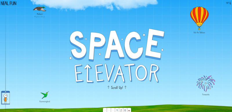 Dos páginas con las que explorar haciendo scroll. En Deep Sea podrás sumergirte hasta uno de los puntos más profundos del océano (10.924 m bajo la superficie del mar), descubriendo por el camino especies e hitos que han tenido lugar en sus inmediaciones. En el caso de Space Elevator, podrás ascender hasta la línea de Kármán, el límite conocido entre la atmósfera y el espacio exterior. ¡Ponte cómodo/a y disfruta del viaje!