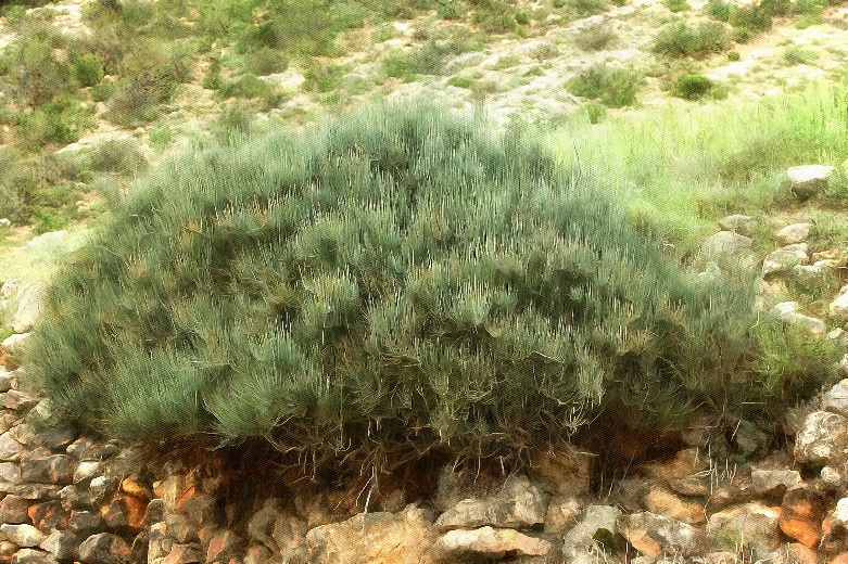 Soy un arbusto denso muy ramificado desde la base. ¡Me encanta tomar el sol! Siempre estoy formando matorrales en zonas soleadas y donde no llueva mucho. Soy originario de la región mediterránea y me podéis encontrar en el sur y este de España, incluso en zonas costeras.¿Cómo soy?