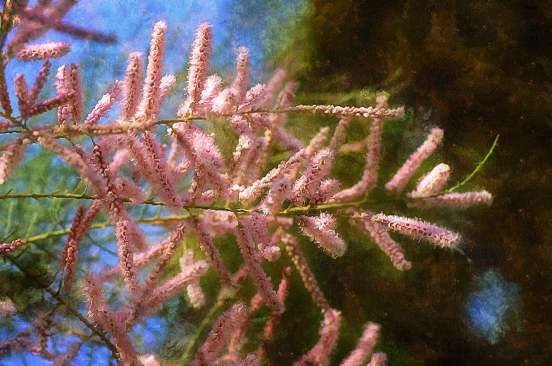 - Mis flores son pequeñas y rosas y se agrupan alrededor de las ramillas.