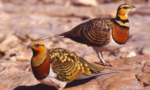 Los espacios abiertos que conforman la estepa dificultan el hallazgo de lugares donde refugiarse, por lo que muchas especies han adoptado una estrategia de probada eficacia: pasar inadvertidos gracias al camuflaje. El plumaje de muchas aves o el pelaje de muchos mamíferos poseen coloraciones similares a las del paisaje que los rodea, siendo así difíciles de detectar por los depredadores, incluido el ser humano. Muestra de ello son las aves más características de la estepa, como la ganga (Pterocles al- chata), la ortega (Pterocles orientalis) o la protegida alondra de Dupont (Chersophilus duponti).