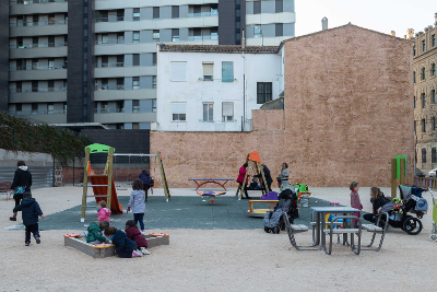 Para el parque infantil se han instalado un total de siete juegos sobre suelo de caucho amortiguador y un arenero. Cuatro de los juegos son aptos para su uso por menores con discapacidad motora. Además, se ha vallado todo el solar con valla infantil y se han colocado cuatro bancos y una mesa de ping-pong.
