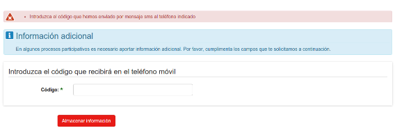 - Si los datos son correctos, se le pedirá un número de un teléfono móvil en el que recibirá un código de confirmación por SMS, que tiene que introducir en el siguiente campo del formulario (este móvil no se utilizará para contactarle ni para enviarle nada, solo es una medida de seguridad)