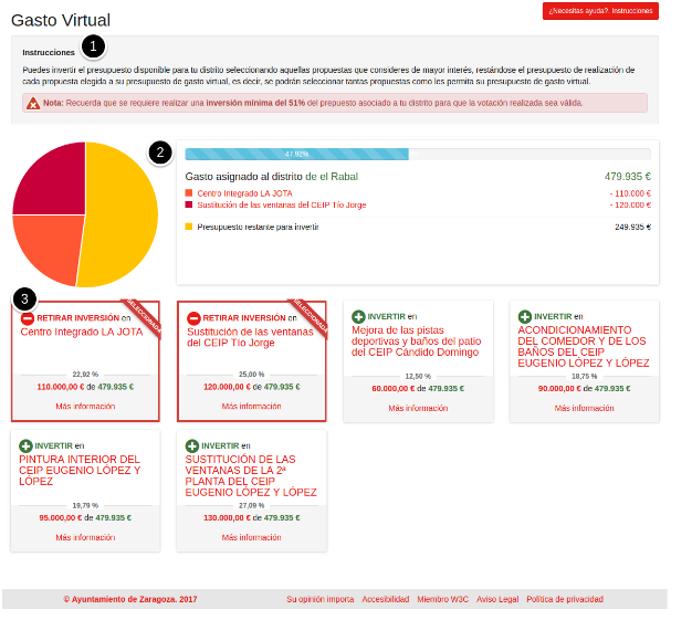 - Visualización del estado del gasto virtual y de las propuestas elegidas